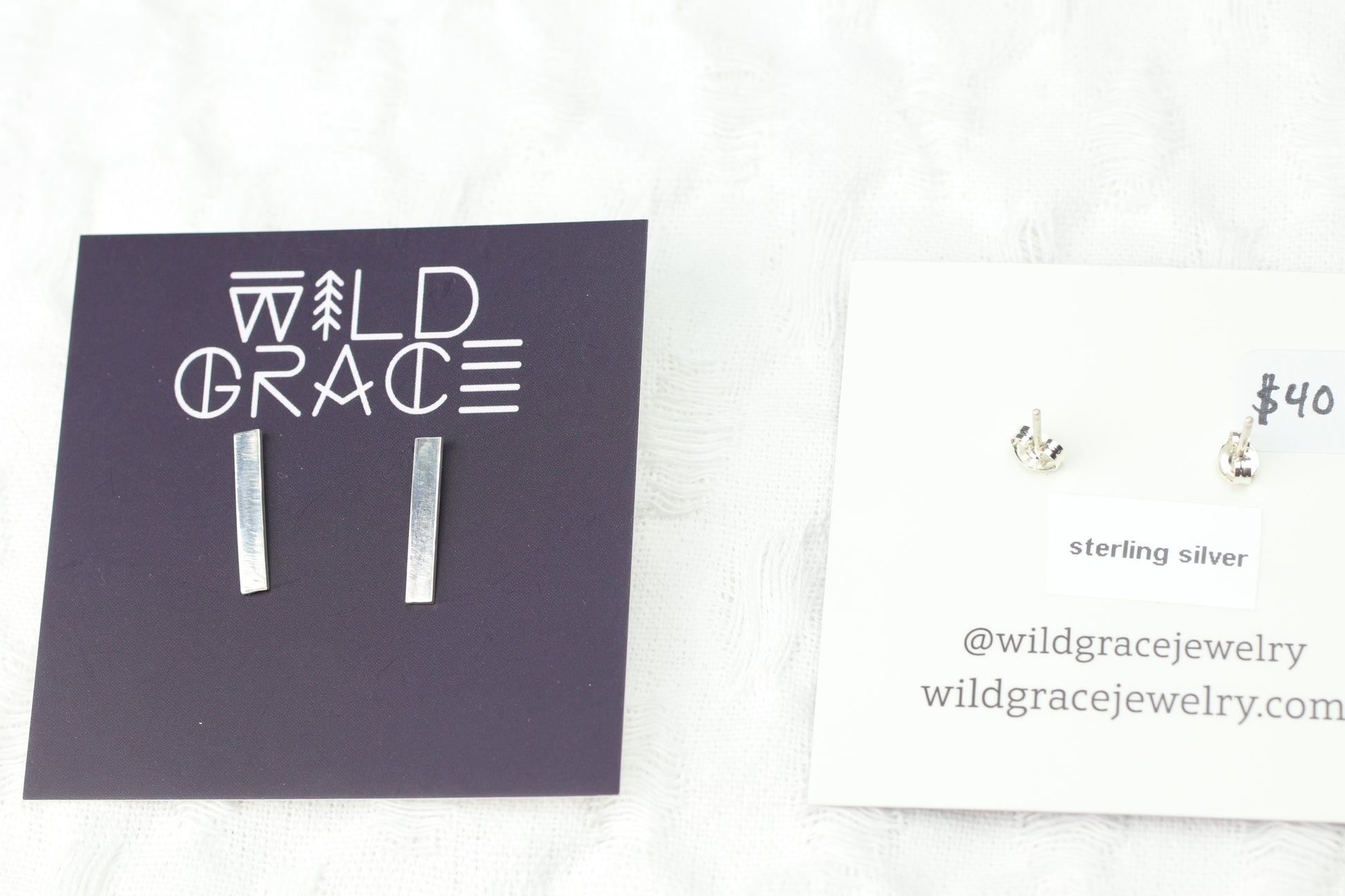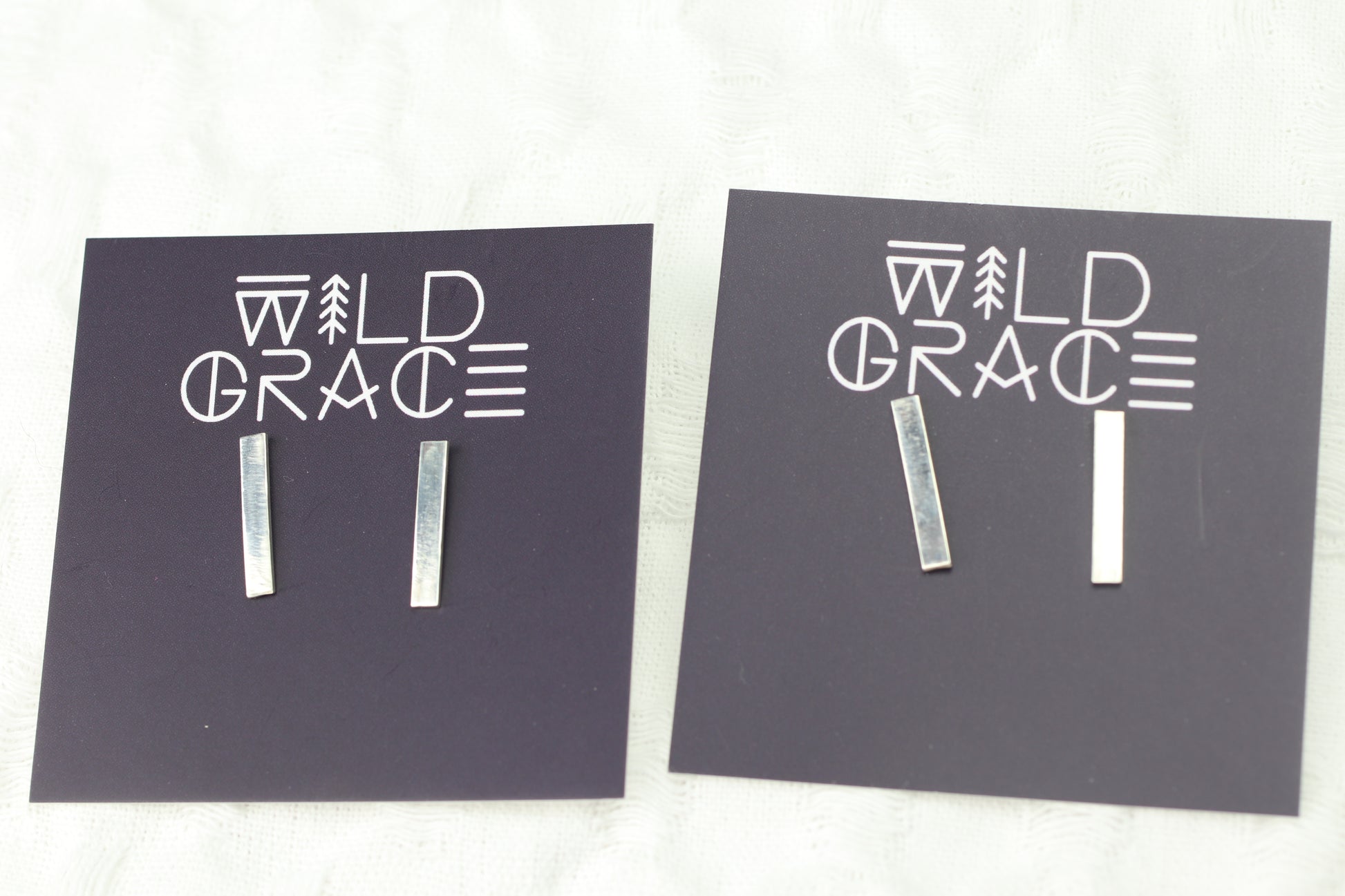 Handmade sterling silver bar or rectangle studs with a brushed silver finish. Minimalist earrings.