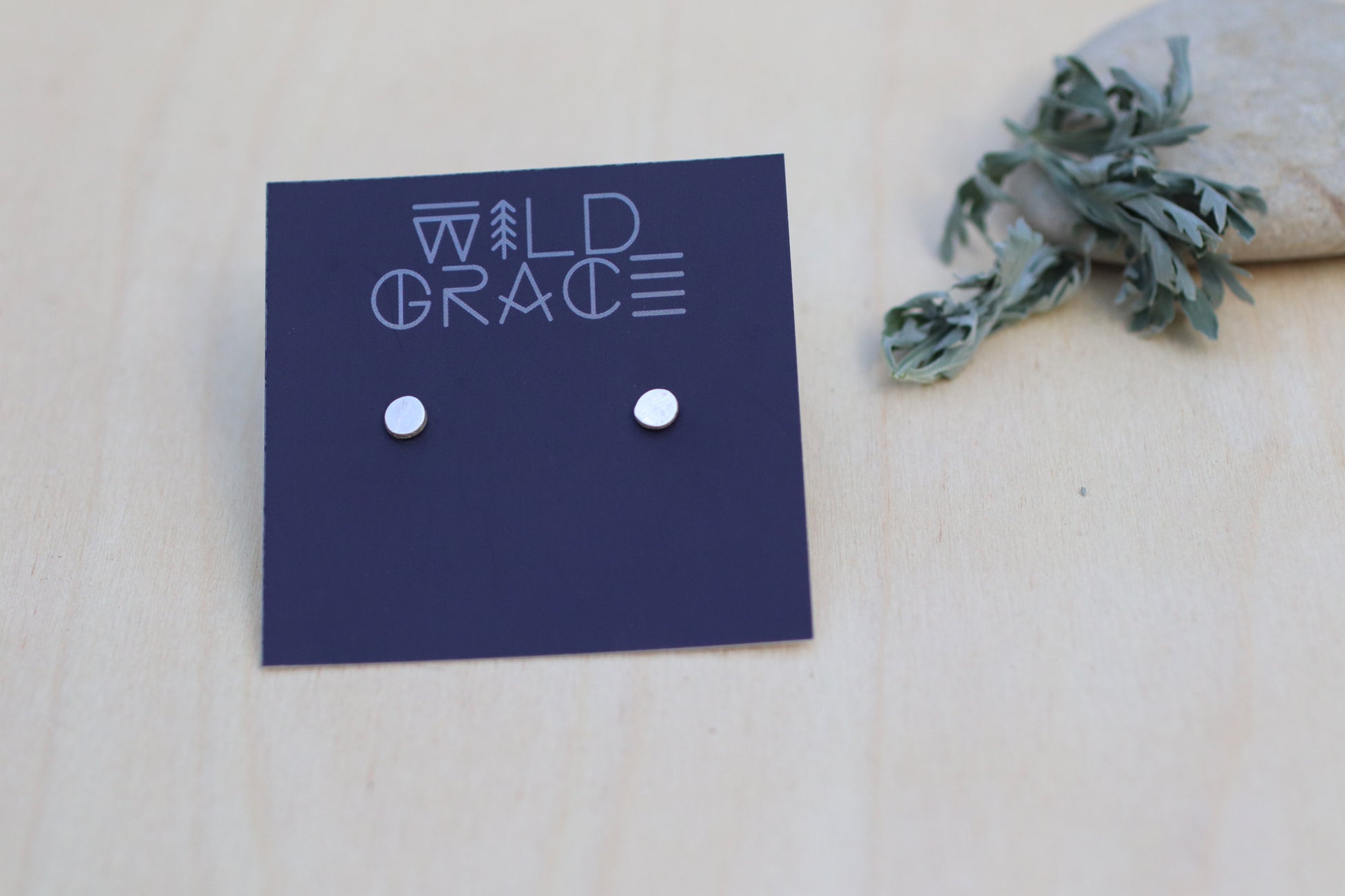 Handmade sterling silver dot studs with a brushed matte finish. Minimalist yet artisan earrings.